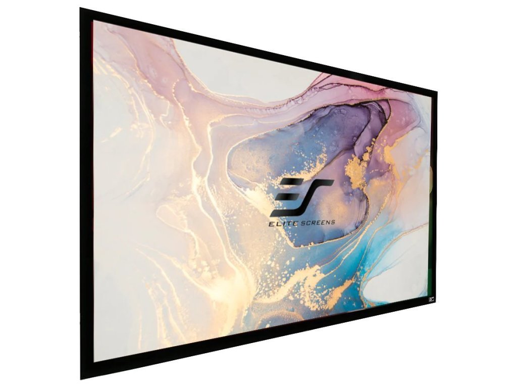 Elite Screens R150WV1Projekční plátno v pevném hliníkovém rámu s úhlopříčkou 150" (381 cm) a poměrem stran 4 : 3. Snadná montáž a instalace během několika minut. Posuvné uchycení na zeď. Šířka rámu 6 cm.