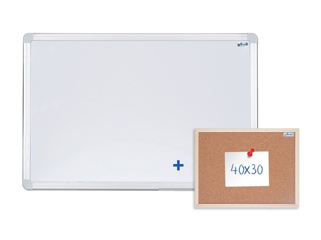 Magnetická tabule AVELI 90x60 cm, hliníkový rám+ korková nástěnka 40x30 cm